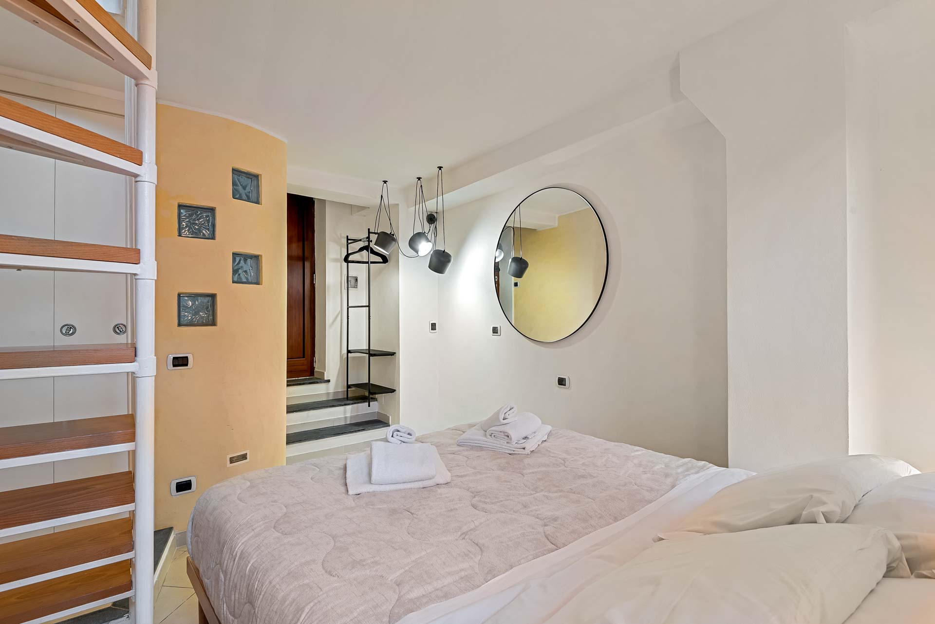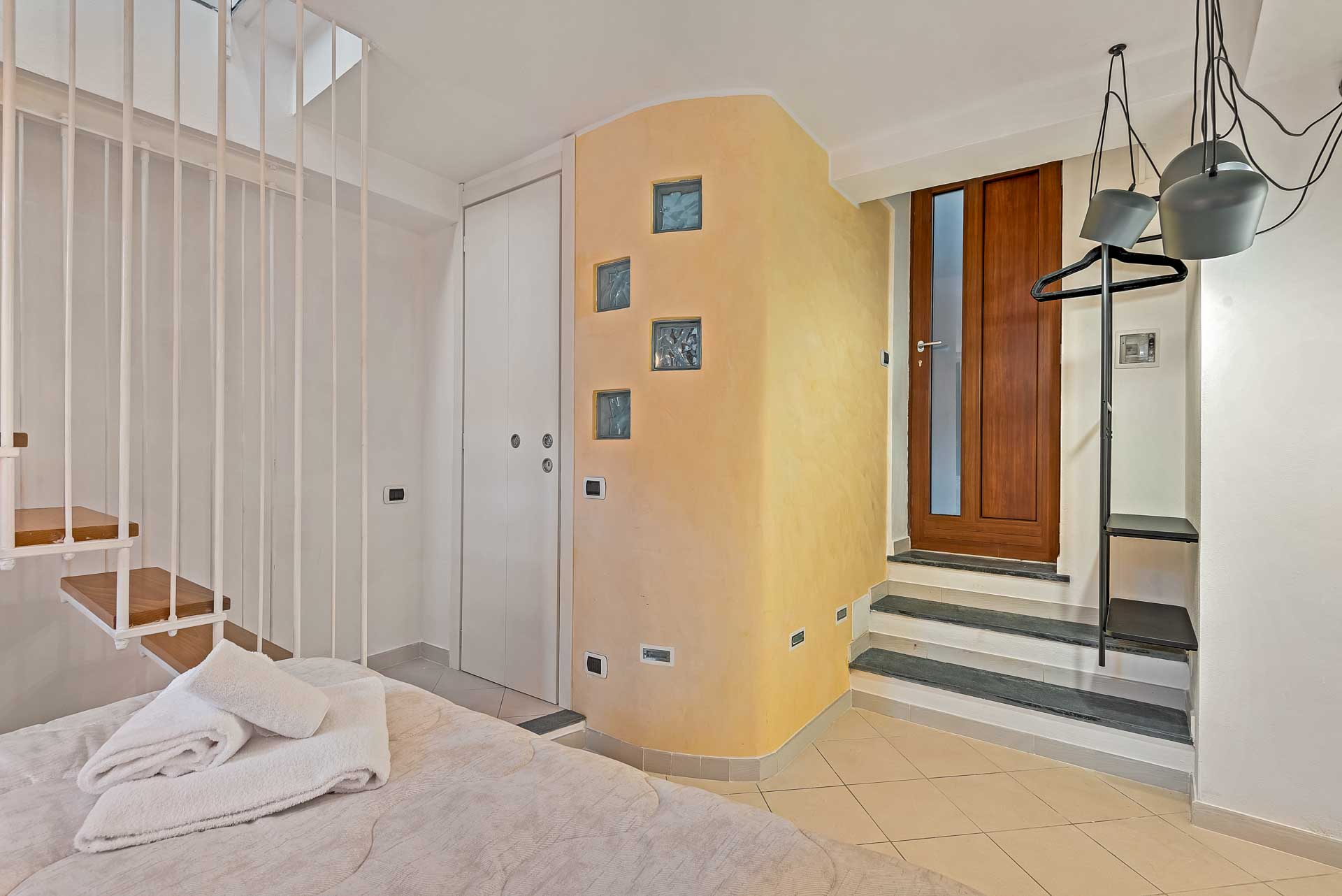 La casa si sviluppa su 2 livelli: al primo piano si trovano la camera da letto e il bagno; al piano superiore la cucina con balcone.